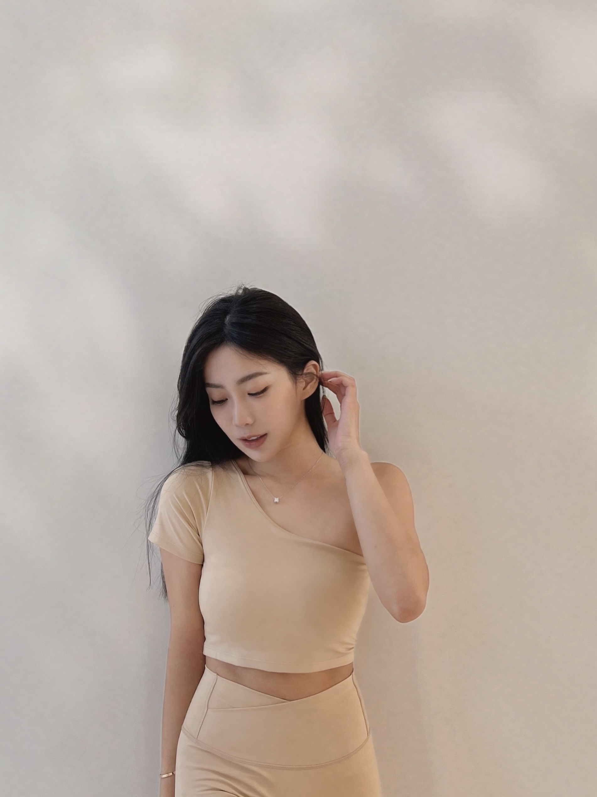 斜肩露鎖骨設計,肩膀線條超修飾!極美😍