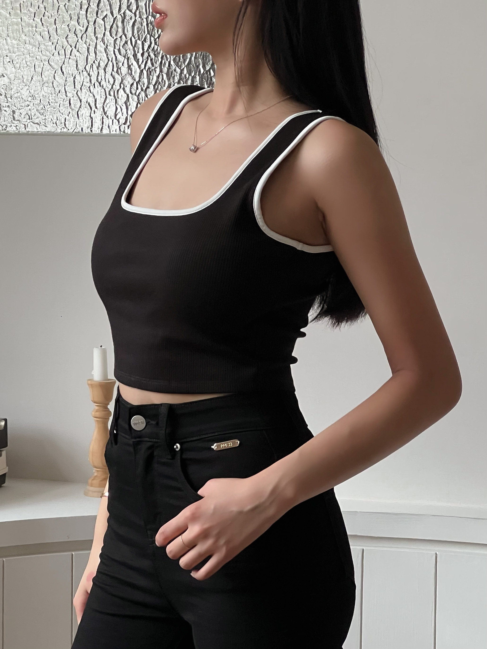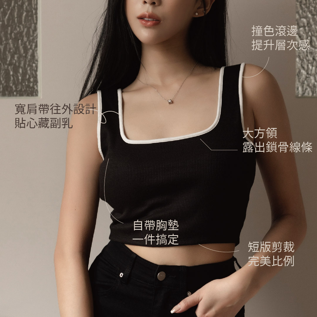 搭配撞色滾邊小露一點胸前線條,微辣女孩來了🌶