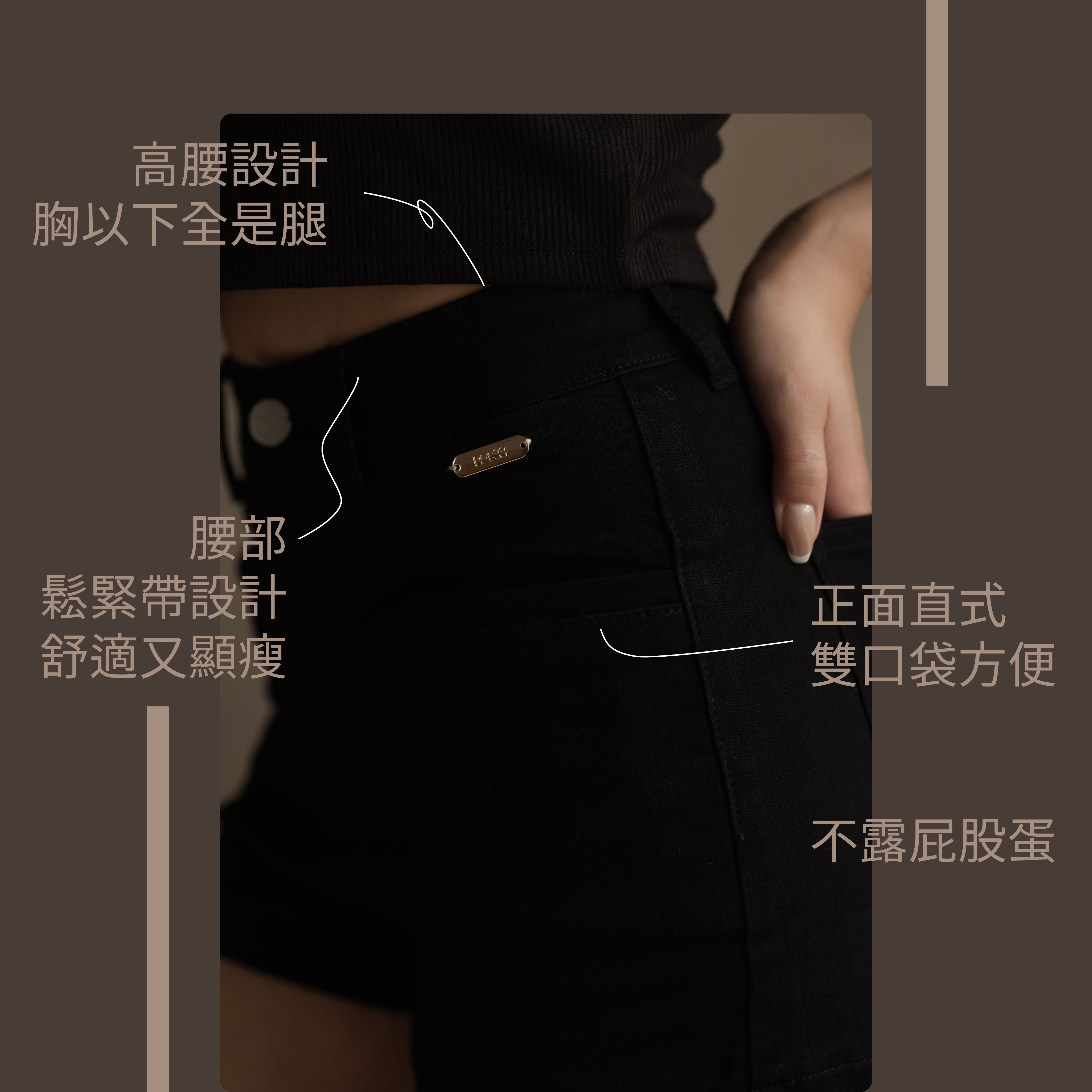 背面褲長有稍微加長,不會露出屁股蛋~