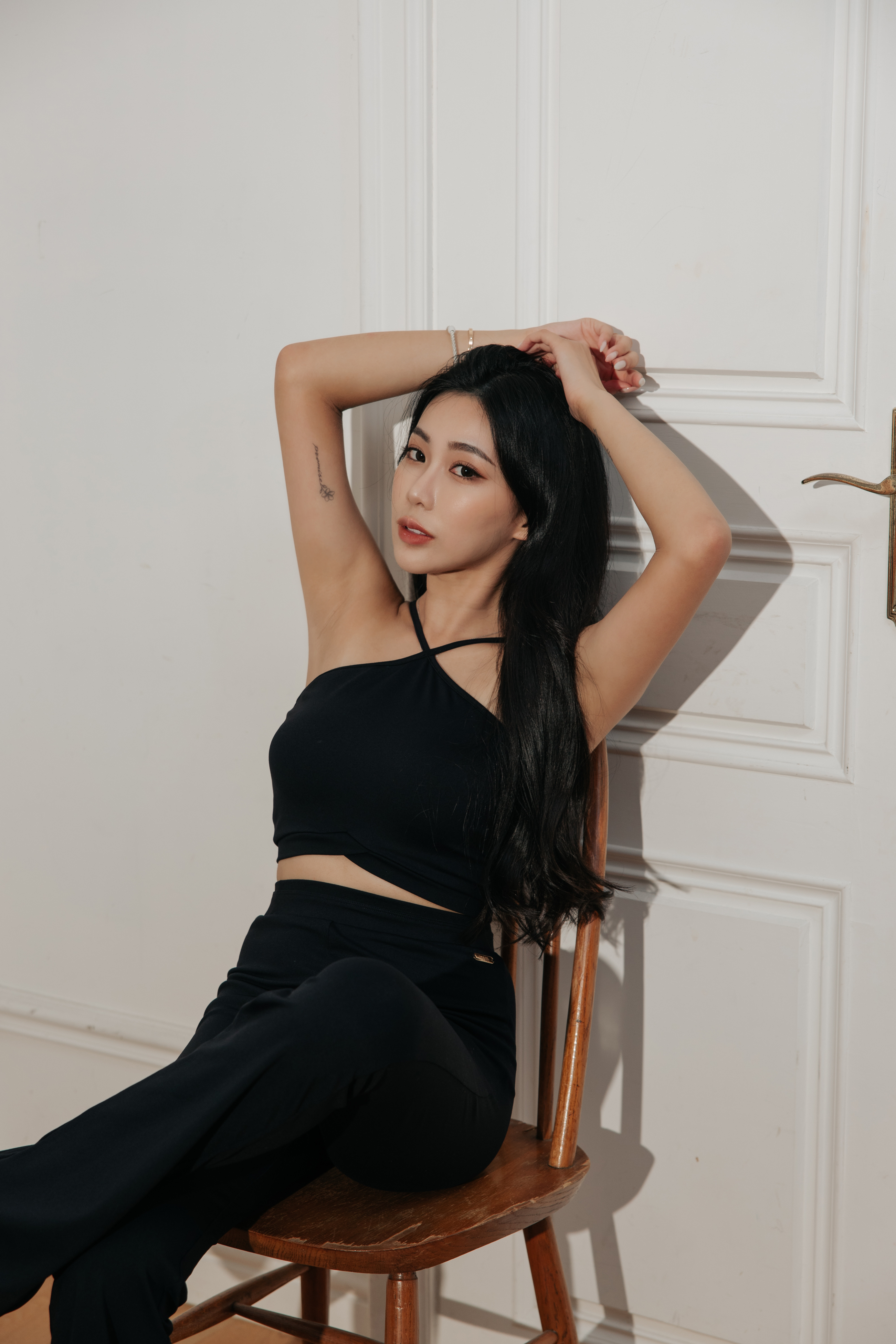 前交叉設計,展露鎖骨與肩線迷人線條